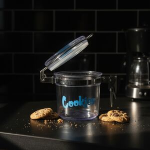 ➤ This clear storage jar combines function and fun with its playful “Cookies” logo.