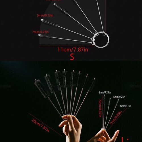 This set includes multiple metal brushes with different diameters, ideal for cleaning narrow channels, downstems, bowls, mouthpieces, and hard-to-reach areas.