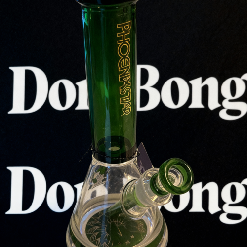 🧪 Phoenixstar Green Tower Beaker Bong is a 30 cm glass water pipe made from thick 9 mm glass, combining a timeless beaker design with fresh green accents and official Phoenixstar branding.